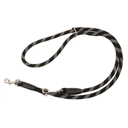 Smycz składana wykonana z odpornego na przetarcia i warunki atmosferyczne sznurka. Dodatkowe zaczepy dają możliwość regulacji długości. 8mm/200cm.