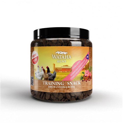 Wataha Hunt Training Snack Drób z Dziką Różą to przysmak dla szczeniąt i dorosłych psów w formie chrupiących ciasteczek. Przeznaczony jest przede wszystkim do nagradzania pupila podczas tresury. Symbol: WTA-2259