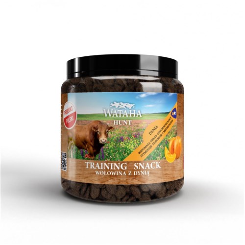 Wataha Hunt Training Snack Wołowina z Dynią to przysmak w formie chrupiących ciasteczek. Dla szczeniąt i dorosłych psów. Składa się z odżywczego mięsa wołowego oraz warzyw. Symbol: WTA-2358