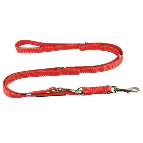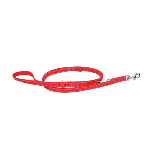 Smycz z wyjątkowo wytrzymałej taśmy polipropylenowej. Brzegi przeszyte odblaskową nicią. Szer. 15mm. Dł. 200cm. Smycz przepinana, możliwe długości: 200cm, 180cm, 140cm, 105cm