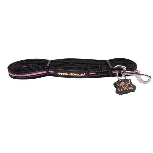 FUNKCJA ANTYPOŚLIZGU - gumowa nić wpleciona w taśmę pozwala bardzo pewnie uchwycić i utrzymać smycz, zwiększając kontrolę przewodnika nad psem.