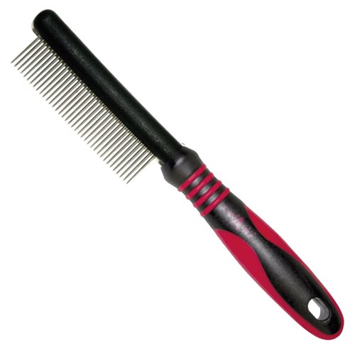Grzebień ze stalowymi zębami i idealny do codziennego stosowania. Wyczesuje martwe włosy i brud pozostawia sierść miękką, gładką i błyszczącą.Zaokrąglone końcówki nie uszkadzają skóry psa. Zęby średnio zwarte, odpowiedni dla miękkiej sierści.