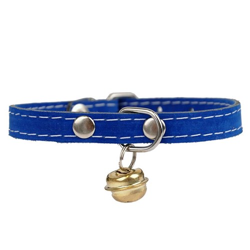 Obroża welurowa z dzwoneczkiem w kolorze niebieskim. 10mm/27cm