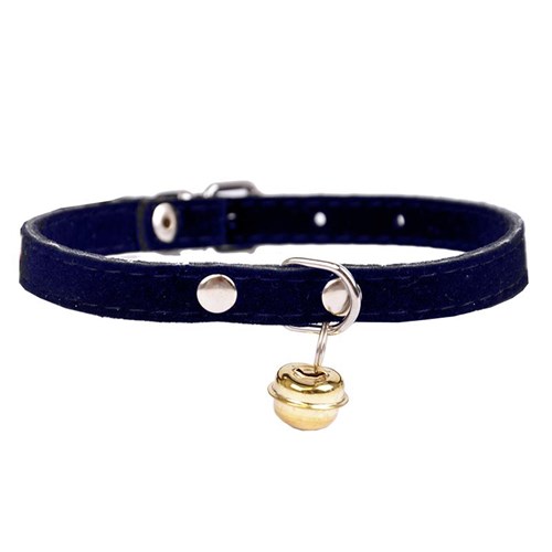 Obroża welurowa z dzwoneczkiem w kolorze GRANATOWYM. 12mm/32cm