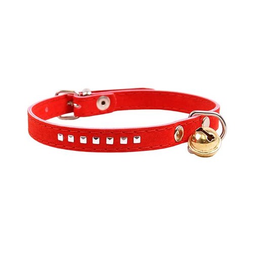 Obroża welurowa zdobiona z dzwoneczkiem w kolorze czerwonym. 12mm/32cm