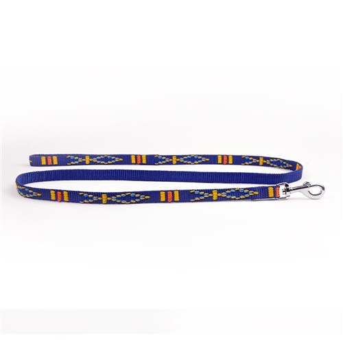 Smycz z taśmy żakardowej jest wyjątkowo lekka i wygodna. Taśma jest gładka i łatwa w konserwacji. Smycz zdobią piękne etniczne wzory. Kolor granatowy, szer. 13mm, dł. 120cm.