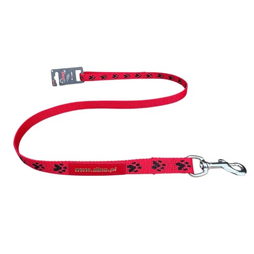 Smycz prosta wykonana z taśmy ozdobnej. Szer. 2,0cm, dł. 120cm. Kolor: Czerwona z czarną łapką.
