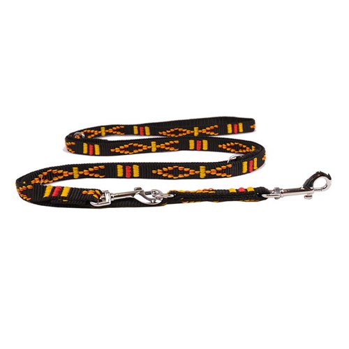 Smycz z taśmy żakardowej z funkcją składania. Jest wyjątkowo lekka i wygodna. Taśma jest gładka i łatwa w konserwacji. Smycz zdobią piękne etniczne wzory. Kolor czarny, szer. 15mm., dł. 200cm.