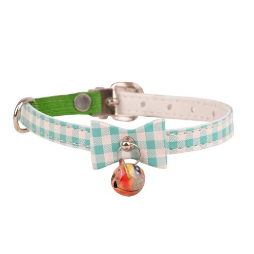 Obróżka w zieloną kratkę z kokardką i dzwoneczkiem. Szer. 10mm. Dł. 30cm.