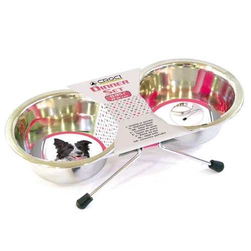 Miski ze stali nierdzewnej na stelażu. Antypoślizgowe nóżki zapewniają wysoką stabilność. Można myć w zmywarce.