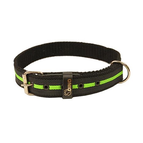Obroża z taśmy gumowanej. Podwójan warstwa taśmy o podwyższonej wytrzymałości na szarpnięcia i przetarcia. Dla dodatkowego wzmocnienia klamra zapinająca montowana jest na skórzanym elemencie. Szer. 25mm. Dł. 53cm.