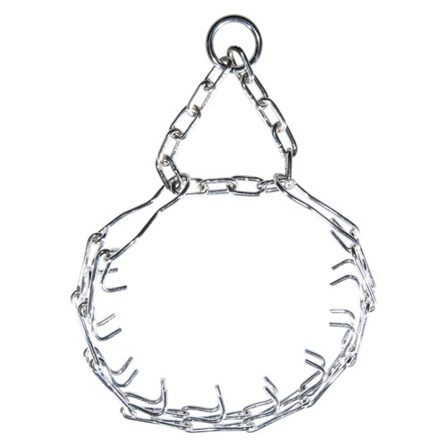 Wykonana z metalu pokrytego warstwą ochronną chromu zapobiegającą korozji i przecieraniu. Posiada blokadę, aby obroża nie zacisnęła się zbyt mocno.Kolce kolczatki ustawione są pod odpowiednim kątem, aby nie kaleczyć psa. Obw. 48-60cm.