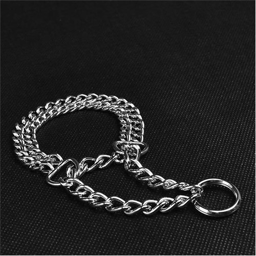 Wykonana z metalu pokrytego warstwą ochronną chromu zapobiegającą korozji i przecieraniu. Dzięki zeszlifowanym ogniwom efektownie odbija światło. Posiada blokadę, aby obroża nie zacisnęła się zbyt mocno. Szer. 2,0cm. Obw. 60cm.