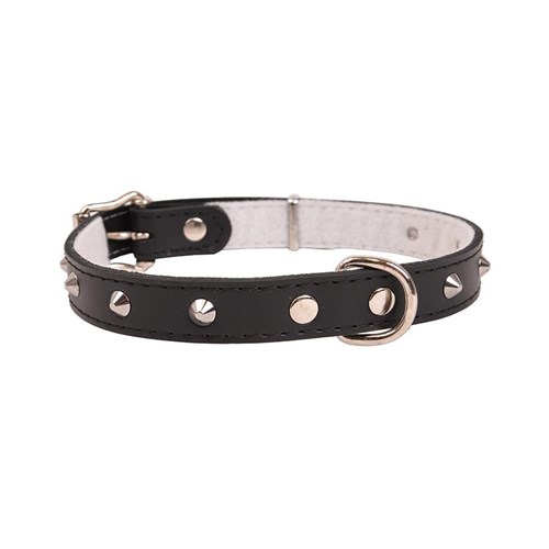 Obroża skórzana zdobiona ćwiekami. Dla poprawy komfortu psa obroża od strony wewnętrznej podszyta jest filcem. Szer. 14mm. Dł. 36cm.