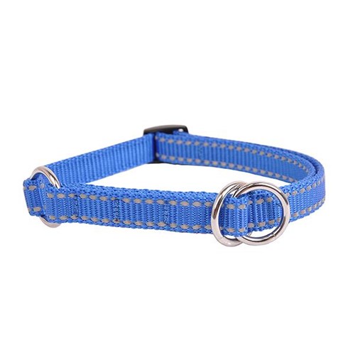 Obroża z taśmy nylonowej. Miękka w dotyku i wytrzymała, wygodna dla psa. Zastosowanie odblaskowej nici poprawia widoczność psa i podnosi estetykę produktu. Szer.25mm. Obw. 40-60cm.