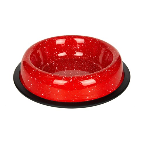 Miska metalowa czerwona, malowana proszkowo o nakrapianym wzorze. Pojemność: 0,71 l