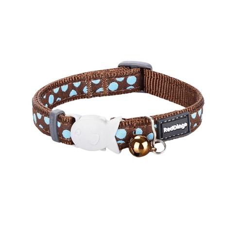 Obroża wykonana z taśmy nylonowej z dzwoneczkiem i plastikową zapinką 'Fish Buckle', która przy obciążeniu 2kg samoczynnie się otwiera i chroni kota przed zahaczeniem lub zawiśnięciem. 12mm/20-32cm.