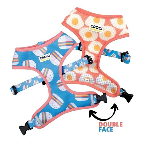 Dwustronne szelki dla psa Foodie są wykonane z miękkiego neoprenu z jednej strony i przewiewnej nylonowej siatki z drugiej. Regulowane paskiem.