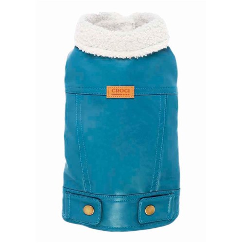 Kurteczka z ekoskóry w stylu "pilotka". Podszewka i kolnierz ze sztucznego owczego futerka. Latwa do zalozenia z zapieciem na rzep i gumka na tylne lapki dla lepszego dopasowania. Mozna prac recznie i w pralce w 30°.