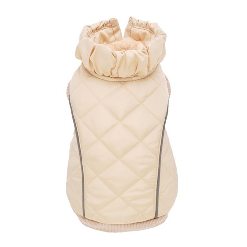 Pikowamna kurteczka jest idealna do ochrony zarówno przed zimnem jak i wilgocia. Model wyposazony jest w gumki na tylne lapy, dodatkowo posiada praktyczne zapiecie na szyi i brzuszku z regulowanym rzepem oraz otwór umozliwiajacy przejscie smyczy.