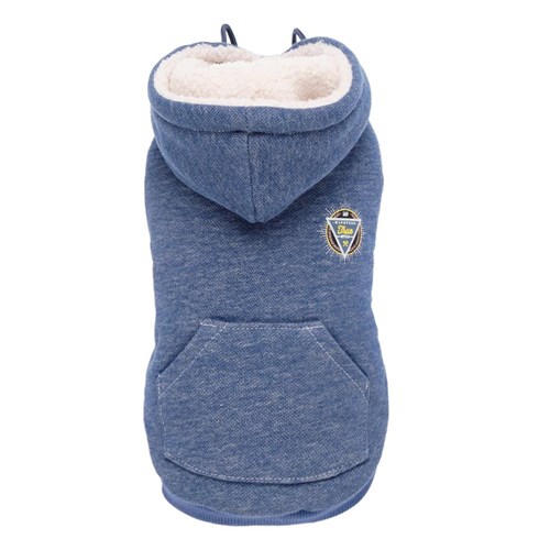 Bluza wykonana z miekkiej tkaniny z efektem denimu. Jest bardzo ciepla dzieki podszewce ze sztucznego futerka. Bluza posiada elastyczna opaske na brzuchu oraz gumowe opaski na tylne lapki. Mozliwosc prania w pralce.