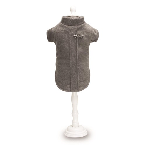 Elegancki plaszczyk z odobna broszka. Plaszyk wykonany z lekkiego a jednoczesnie cieplego materialu. Elastyczny obwód na rzep oraz opaski na tylne lapy zapewniaja maksymalne dopasowanie. Plaszczyk posiada otwór na smycz.