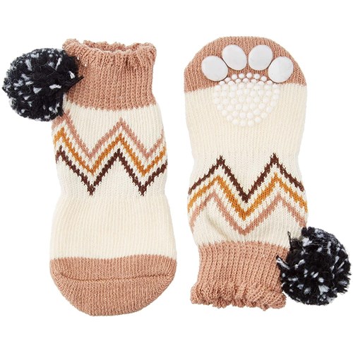 Kolorowe i miękkie skarpetki dla psów wykonane z 75% bawełny, 7% nylonu, 13% poliestru oraz 5% elastanu. Komplet 4 skarpetek. Rozmiar L (szer.35mm wys. 90mm)
