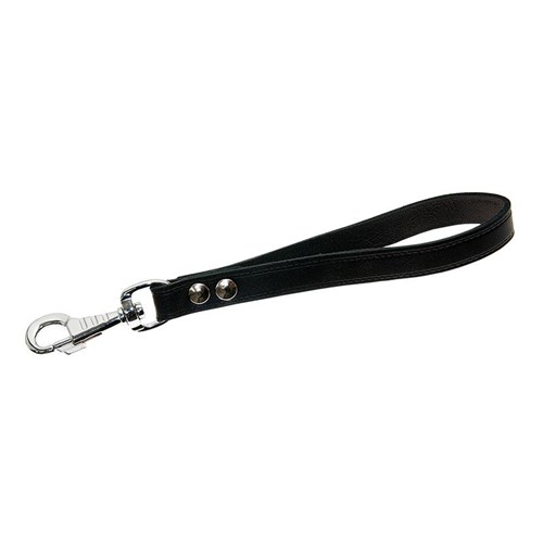 Uchwyt skórzany z karabinkiem. Długość elementu skórzanego 20cm.