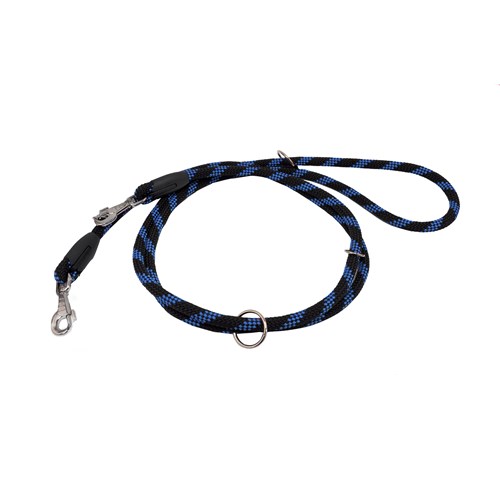 Smycz składana wykonana z odpornego na przetarcia i warunki atmosferyczne sznurka. Dodatkowe zaczepy dają możliwość regulacji długości. 12mm/300cm.