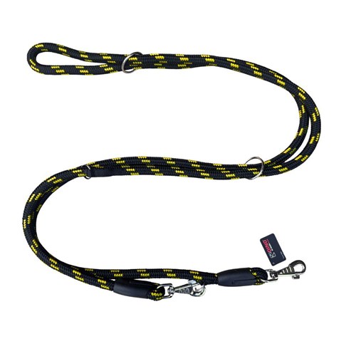 Smycz składana wykonana z odpornego na przetarcia i warunki atmosferyczne sznurka. Dodatkowe zaczepy dają możliwość regulacji długości. 14mm/500cm.