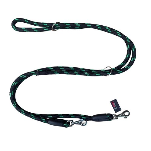 Smycz składana wykonana z odpornego na przetarcia i warunki atmosferyczne sznurka. Dodatkowe zaczepy dają możliwość regulacji długości. 14mm/500cm.