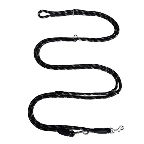 Smycz składana wykonana z odpornego na przetarcia i warunki atmosferyczne sznurka. Dodatkowe zaczepy dają możliwość regulacji długości. 14mm/500cm. Symbol: 1100579/5
