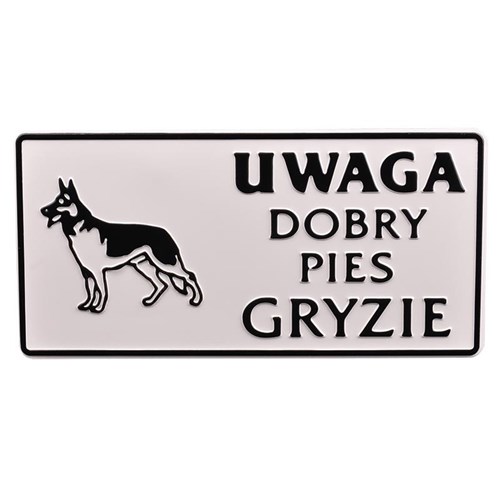 Tabliczkia metalowa ostrzegawcza. UWAGA DOBRY PIES GRYZIE Kolor tabliczki wybierany jest losowo. Rozmiar tabliczki 15x30 cm.