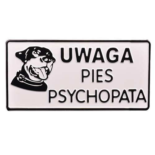 Tabliczkia metalowa ostrzegawcza. UWAGA PIES PSYCHOPATA Kolor tabliczki wybierany jest losowo. Rozmiar tabliczki 15x30 cm.