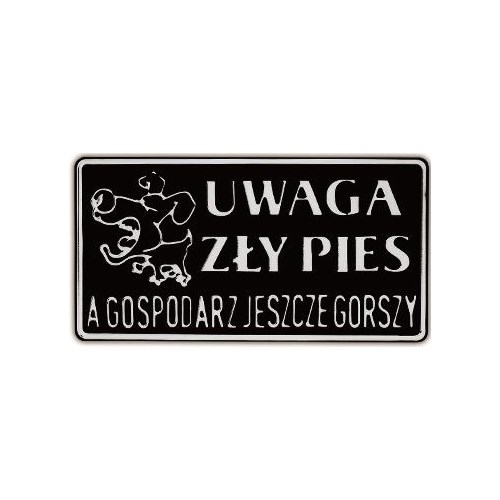 Tabliczkia metalowa ostrzegawcza. UWAGA ZŁY PIES A GOSPODARZ JESZCZE GORSZY Kolor tabliczki wybierany jest losowo. Rozmiar tabliczki 15x30 cm.