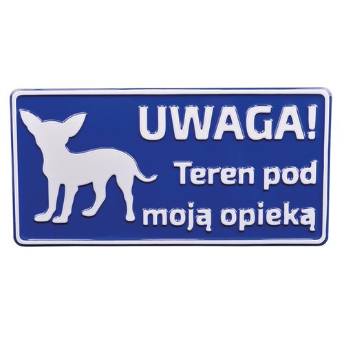 Tabliczkia metalowa ostrzegawcza. UWAGA! TEREN POD MOJĄ OPIEKĄ Kolor tabliczki wybierany jest losowo. Rozmiar tabliczki 15x30 cm.