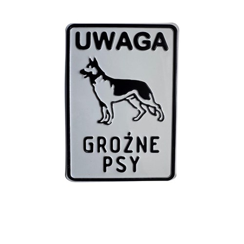 Tabliczkia metalowa ostrzegawcza. UWAGA GROŹNE PSY Kolor tabliczki wybierany jest losowo. Rozmiar tabliczki 20x15cm.