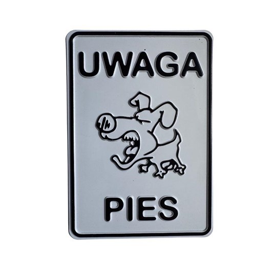 Tabliczkia metalowa ostrzegawcza. UWAGA PIES Kolor tabliczki wybierany jest losowo. Rozmiar tabliczki 20x15cm.