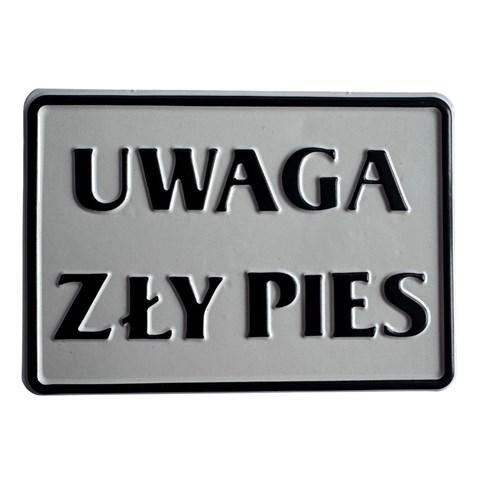 Tabliczkia metalowa ostrzegawcza. UWAGA ZŁY PIES Kolor tabliczki wybierany jest losowo. Rozmiar tabliczki 15x15cm.