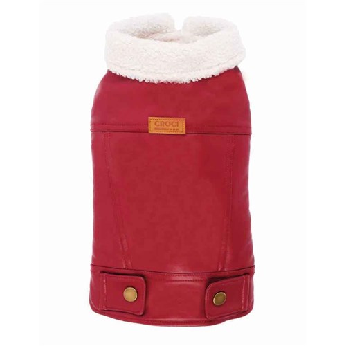 Kurteczka z ekoskóry w stylu "pilotka". Podszewka i kolnierz ze sztucznego owczego futerka. Latwa do zalozenia z zapieciem na rzep i gumka na tylne lapki dla lepszego dopasowania. Mozna prac recznie i w pralce w 30°.
