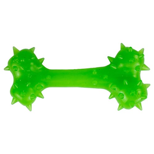 Zabawka dla psa w kształcie kości z kolcami o przyjemnym waniliowym zapachu. Świetnie nadaje się do gryzienia, nauki aportowania oraz do masowania dziąseł. Przeznaczona dla wszystkich ras psów. Zabawka pływająca. Materiał: guma. Rozmiar: 12 cm